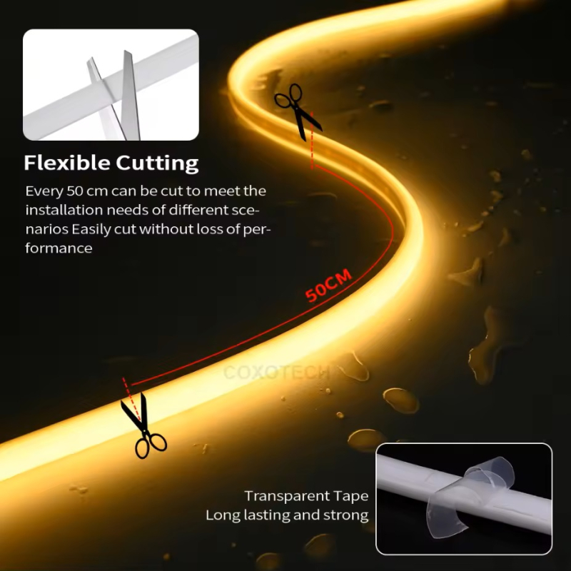50x CUT50 Flex COB LED Strip 230V i 3000K, 11W/m, IP65, Dæmpbar - Metermål