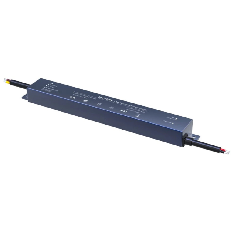 Ekstra kraftig og professionel LED driver på hele 200W til større 24V LED installationer. Driveren er udført i robust aluminiumshus og er IP67-klassificeret, hvilket gør den fuldt vand- og støvtæt – ideel til udendørs brug i det danske klima.