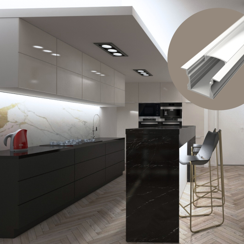 RECESSED 2 profilen er ideel til både private hjem og erhverv. Den giver et rent, eksklusivt look og fremhæver rummets arkitektur med elegant lys. Perfekt som arbejdslys i køkkenet eller som dekorativ lyslinje i vægge og lofter.