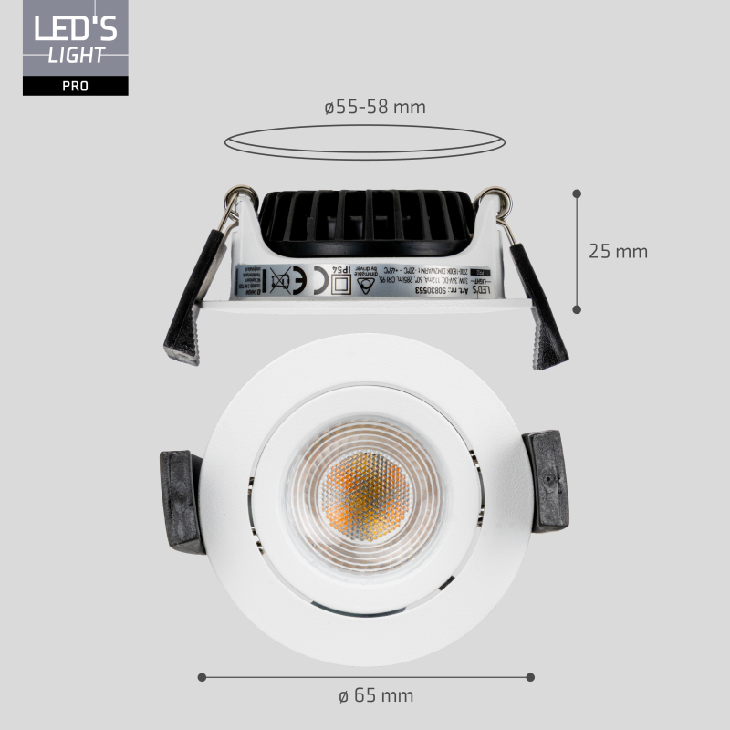 Spottet har en lys spredningsvinkel på 60° og kan vippes 25°, så du nemt kan rette lyset mod fx vægge, billeder, nicher eller arbejdszoner. Det er samtidig dæmpbart med de fleste LED lysdæmpere – også SMART HOME løsninger, der understøtter Triac dæmpning.