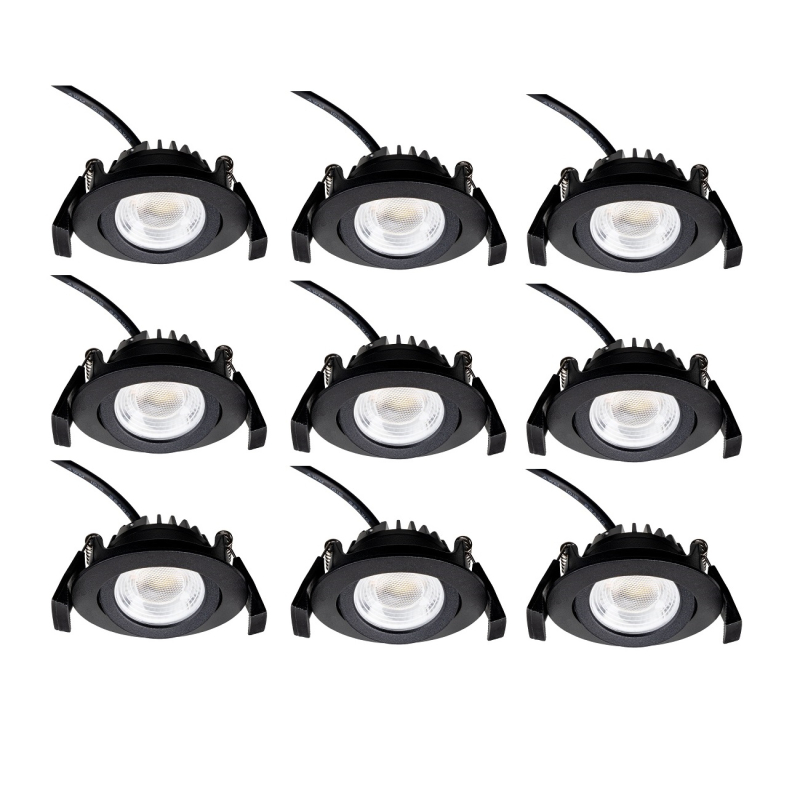 9x Low Profile LED Indbygningsspot 5W, Dim2Warm, Ra95 - Sort