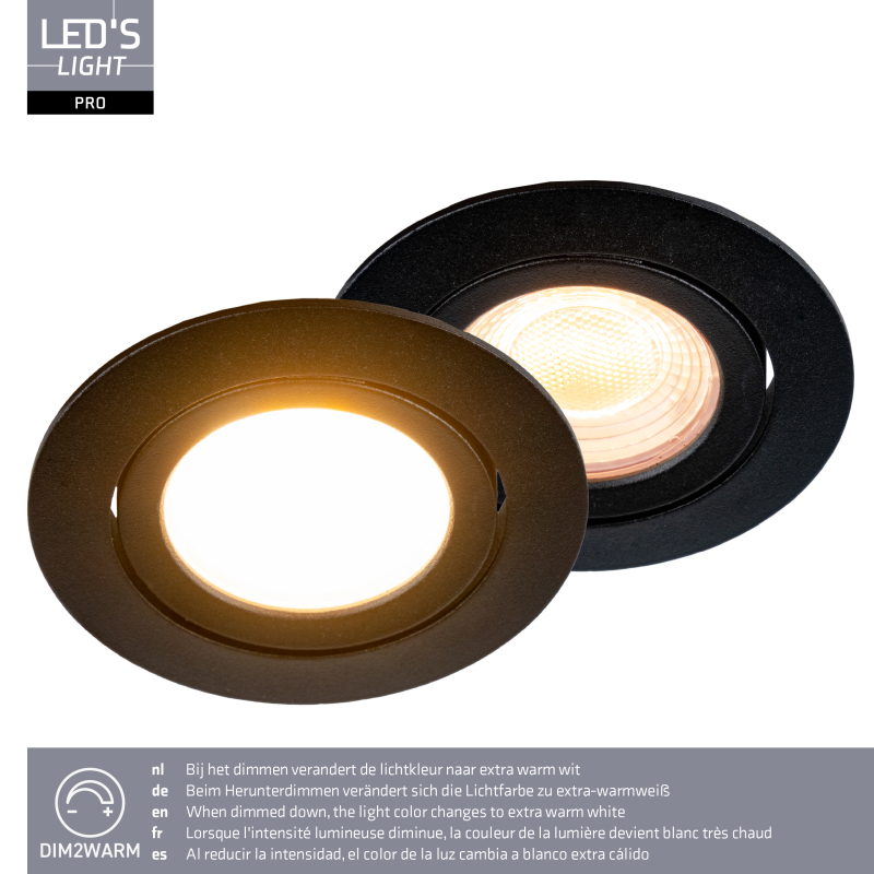 Low Profile LED Indbygningsspot 5W, Dim2Warm, Ra95 - Sort
