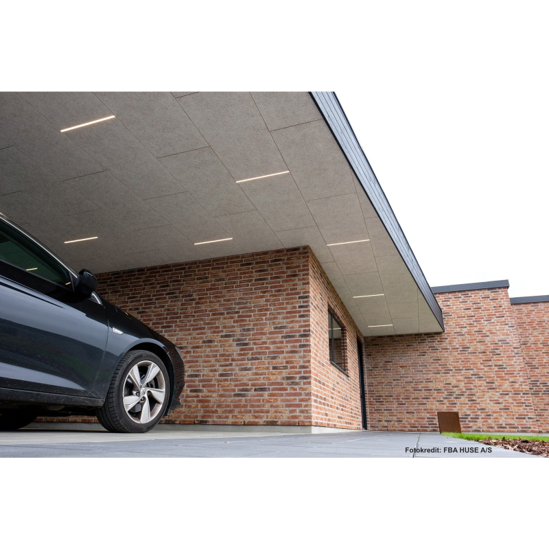 Dette Troldtekt LED lysskinne sæt er udviklet til at skabe en stilren og integreret belysningsløsning, hvor armaturet flugter med loftet. Den planforsænkede installation giver et diskret og professionelt udtryk, samtidig med at lyset fordeles ensartet i rummet.