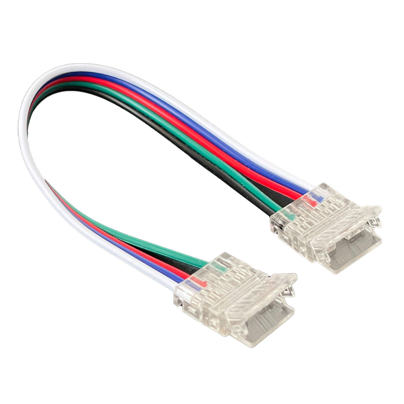 Dette samlestykke er designet til at forbinde IP20 RGBW COB LED strips med en bredde på 12 mm. Det leveres med en ledning, som gør det muligt at tilslutte LED strippen.