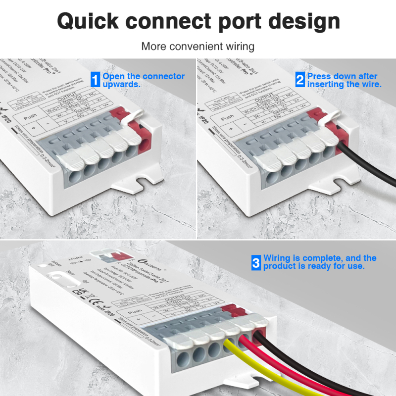 - 3-i-1 funktioner: Understøtter RGB, RGBW og RGB+CCT LED strips