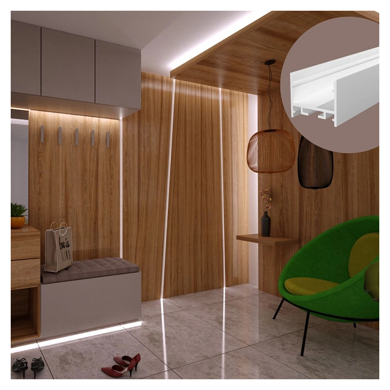 Til denne profil kan du tilkøbe wireophæng samt løse opale front covers i ruller af 20 meter, så du kan skabe lange, sammenhængende lyslinjer uden samlinger. Se de mange muligheder længere nede på siden.