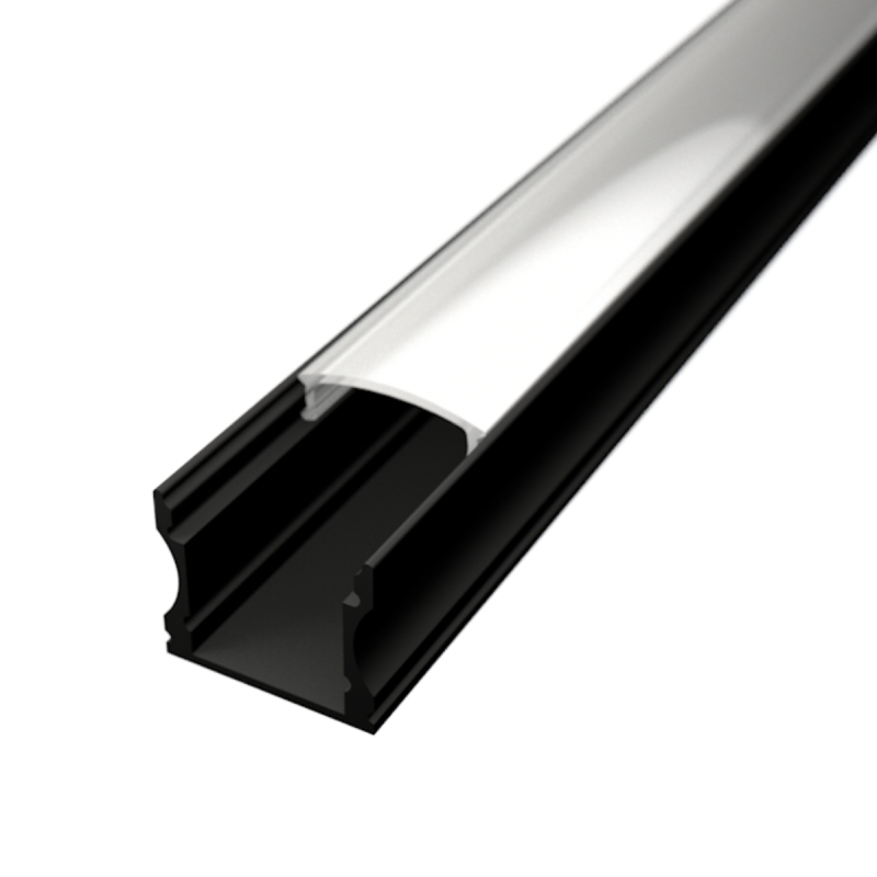 Skab et elegant og professionelt lysdesign med vores SURFACE 2 alu profil i sort. Denne profil er perfekt til både overflademontering og indbygning i lofter, hvor du ønsker en plan og stilren afslutning. Ideel til LED strips med en bredde på op til 12 mm – perfekt til køkkener, stuer, kontorer og andre moderne indretninger.
