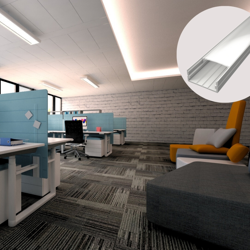 Skab et elegant og professionelt lysdesign med vores SURFACE 3 alu profil i hvid. Denne profil er perfekt til både overflademontering og indbygning i lofter, hvor du ønsker en plan og stilren afslutning. Ideel til LED strips med en bredde på op til 21 mm – perfekt til køkkener, stuer, kontorer og andre moderne indretninger.