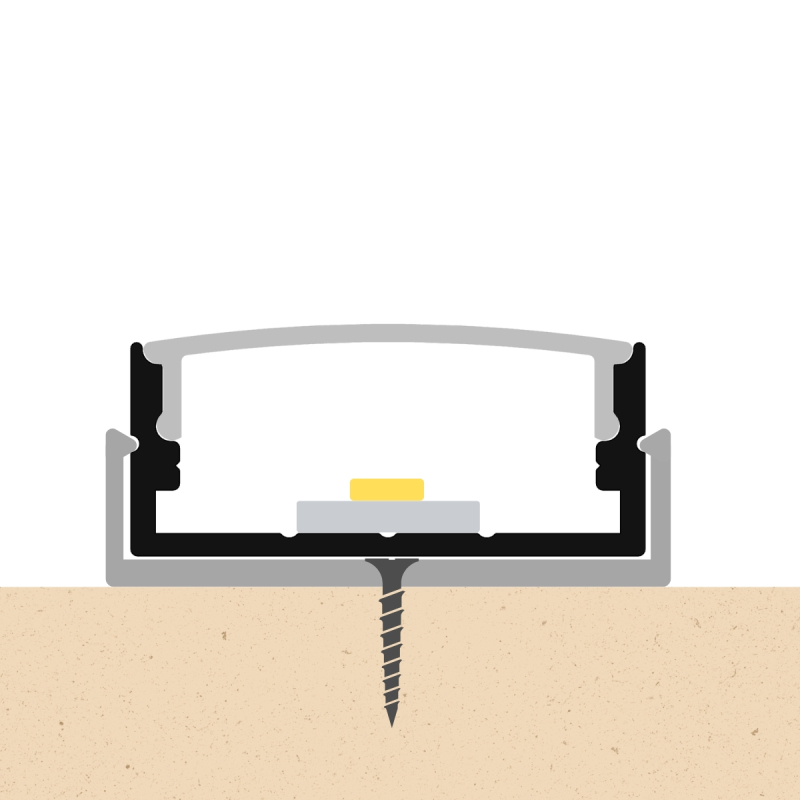 - Montering: Bor huller i profilen, og anvend undersinket skruer, eller de medfølgende monteringsclips.