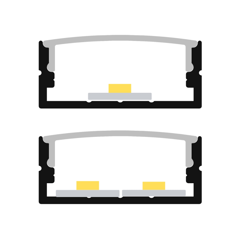 - Jævn lysspredning: Det buede opale frontcover fordeler lyset ensartet og fjerner synlige LED punkter ved COB LED strips.